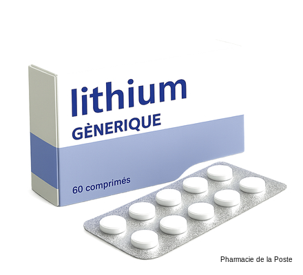 Le lithium générique contient le même principe actif que la marque de référence, avec des excipients équivalents. Le coût en ligne est moins cher grâce à l’absence de coûts marketing et de brevets.